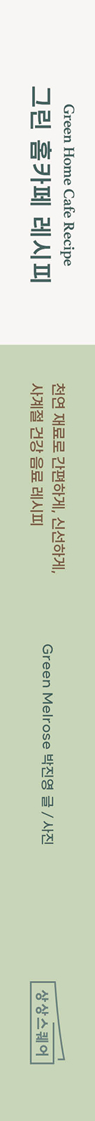 한 잔의 주스, 한 컵의 스무디가 오늘의 나를 돌보는 작고 확실한 쉼이 된다. 몸과 마음이 지친 날, 복잡한 세상에서 잠시 벗어나 내 몸과 내면에 집중하는 시간.《그린 홈카페 레시피》는 그 순간을 위한 작은 제안을 모은 책이다. 건강은 거창한 목표가 아니라 매일의 선택에서 비롯된다. 과하게 꾸미지 않은 재료, 자연 그대로의 맛을 담은 주스 한 잔이 하루를 조금 더 맑고 단단하게 만들어줄 것이다.